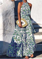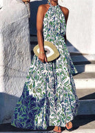 Questo maxi dress con stampa botanica incarna il fascino delle giornate estive grazie al suo tessuto leggero e alla linea scivolata.