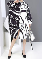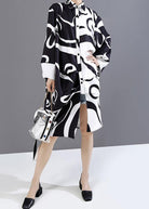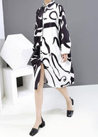 Questo abito chemisier oversize con stampa grafica è perfetto per chi ama lo stile moderno e ricercato.