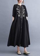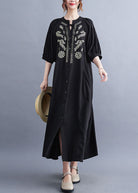 Questo abito chemisier con ricami floreali è l'equilibrio perfetto tra stile rilassato e dettagli eleganti.