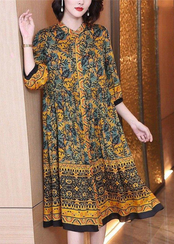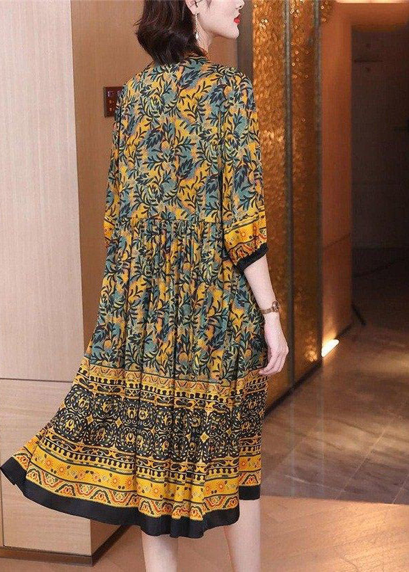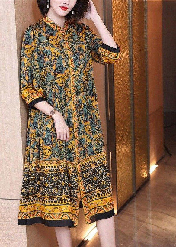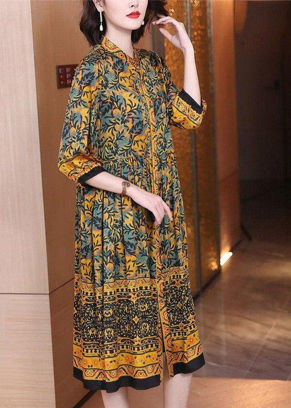 • Stampa etnica: Motivi floreali e geometrici nei toni del giallo, verde e nero