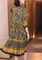 Questo abito a camicia in stile etnico è perfetto per chi ama un look originale e vivace senza rinunciare alla praticità.