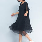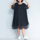 Questo abito nero in chiffon leggero con motivo floreale tono su tono è la scelta ideale per un look comodo e curato.