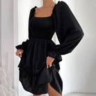 Abito Corto con Maniche a Palloncino | Scollo Quadrato | Stile Elegante e Romantico
