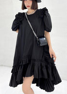 Questo abito corto con balze e maniche voluminose è la scelta perfetta per un look glamour e originale.
