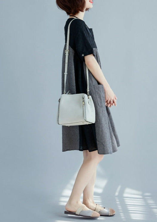 • Design Combinato: Parte superiore in tessuto nero a contrasto con corpo grigio lavorato