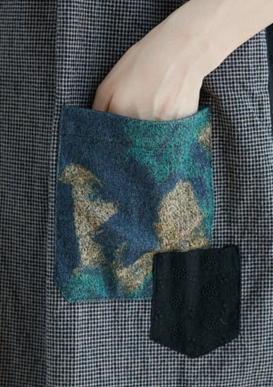 Il gioco di tessuti e la tasca decorata lo rendono unico e sempre attuale.
