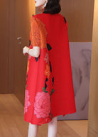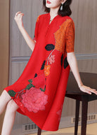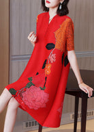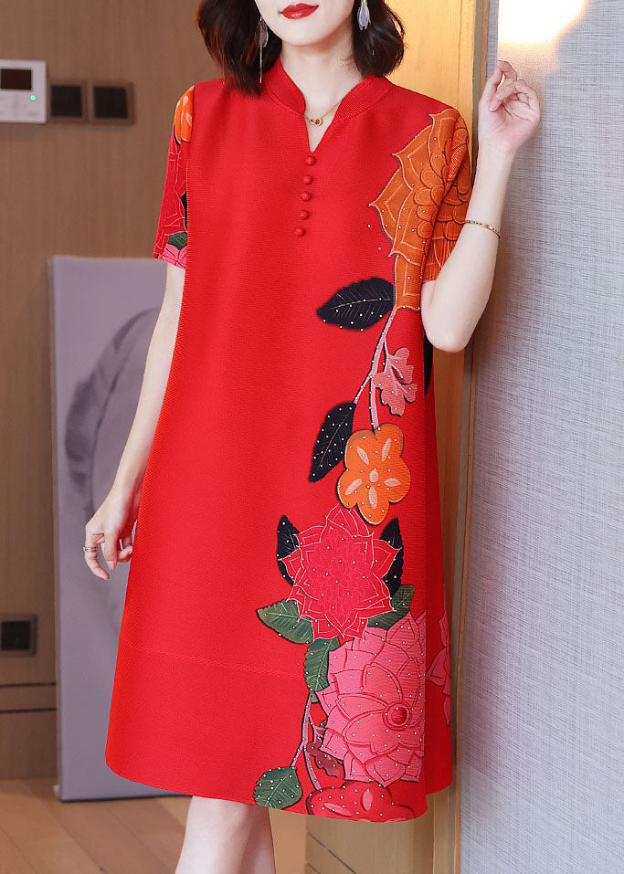 Questo abito corto rosso è decorato con maxi fiori e dettagli ricamati che donano eleganza e carattere.