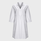 Questo abito corto in lino con scollo a V e maniche a 3/4 è il mix ideale tra freschezza e stile casual chic.