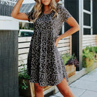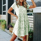 - Design: Abito svasato con maniche corte e scollo rotondo