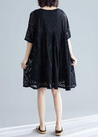 Questo vestito corto in pizzo nero è fresco e leggero, con un tocco di eleganza discreta.