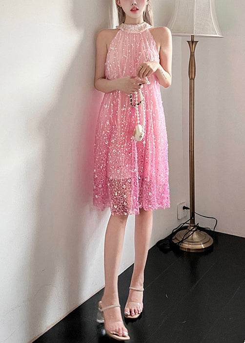 Abito Corto Rosa con Paillettes