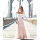 Questo abito lungo da cerimonia è la scelta perfetta per matrimoni, eventi o serate chic. Il corpetto in pizzo bianco ricamato si abbina delicatamente alla gonna rosa cipria in chiffon, creando un contrasto femminile e sofisticato. Leggero, arioso e con una silhouette fluida che dona grazia ad ogni passo.