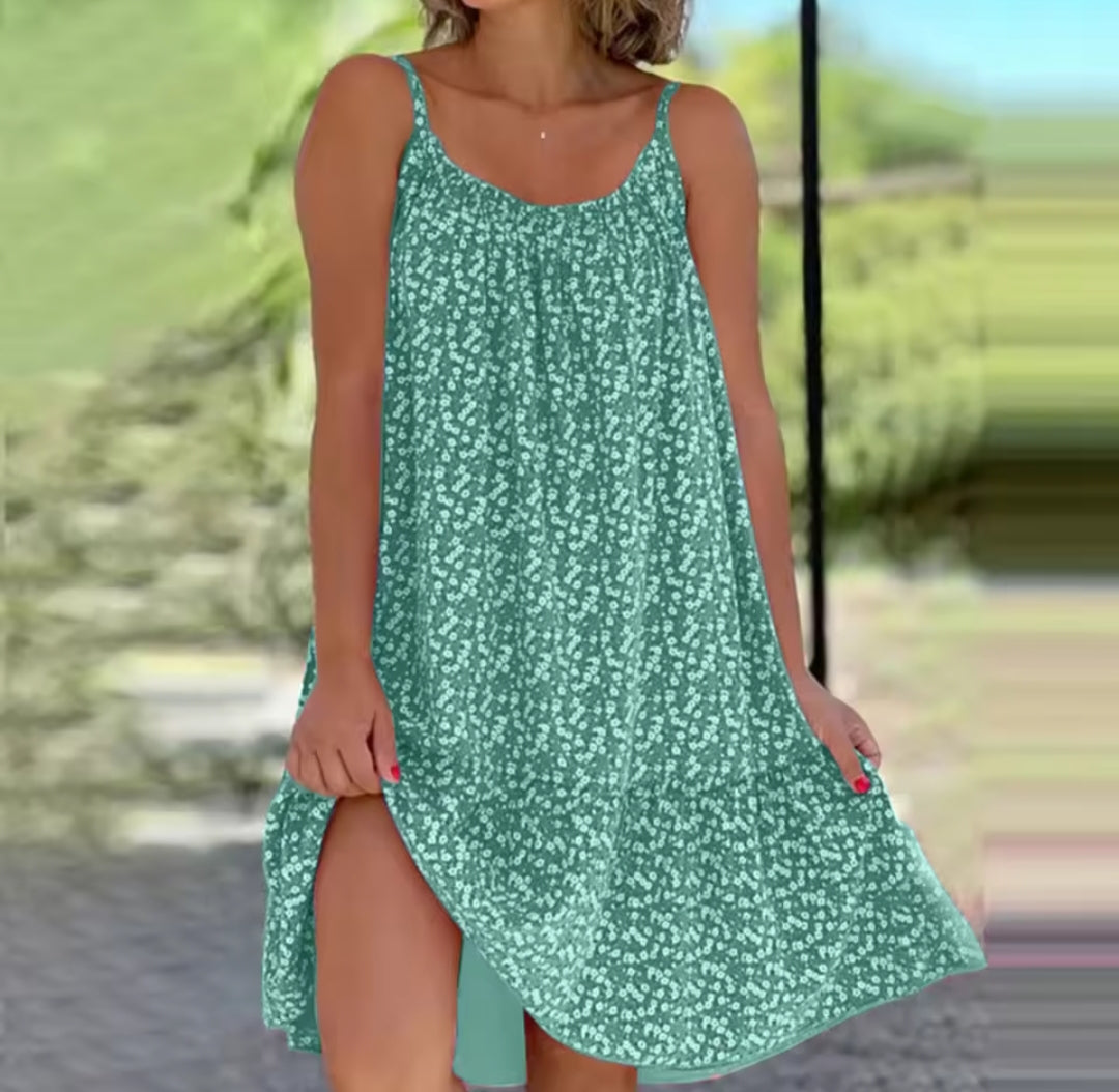 Questo vestito corto con spalline sottili e stampa floreale è perfetto per goderti il sole con stile.
