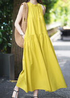 Questo abito lungo senza maniche è fresco, leggero e versatile, ideale per affrontare le giornate calde con stile.
