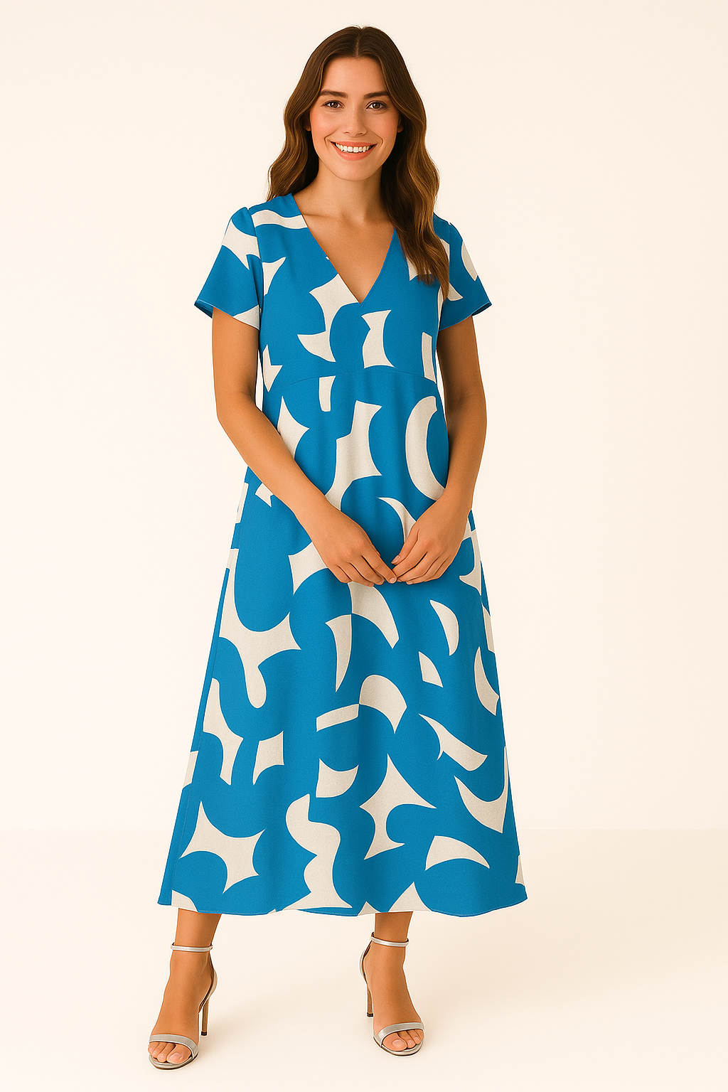 Questo maxi abito a fantasia astratta è la scelta ideale per le passeggiate al sole, le vacanze estive o gli eventi casual.