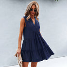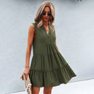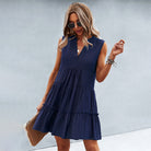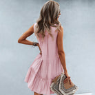 Questo abito estivo senza maniche con design svasato è perfetto per un look casual e rilassato, ideale per passeggiate, brunch e vacanze estive.