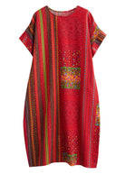 Questo abito midi rosso con stampa etnica multicolore unisce comfort, vivacità e stile in un solo capo.