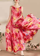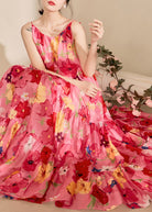 Questo maxi dress a balze con stampa floreale vivace è perfetto per momenti spensierati e colorati.