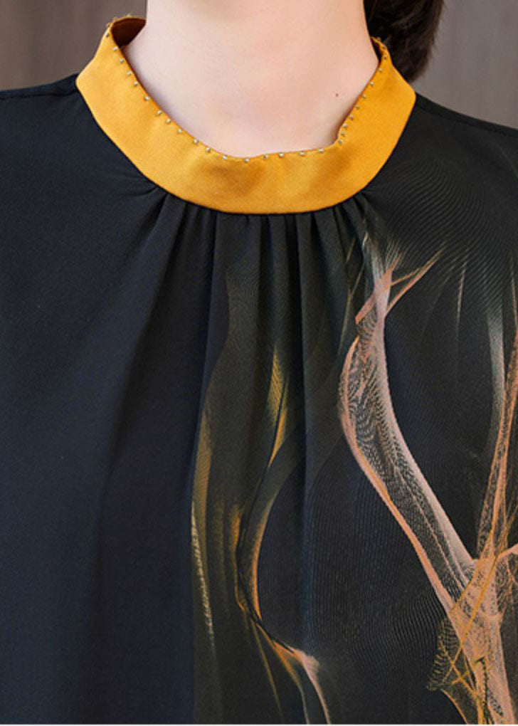 • Stampa Floreale Artistica: Fiori gialli e verdi sfumati su fondo nero con effetto dipinto