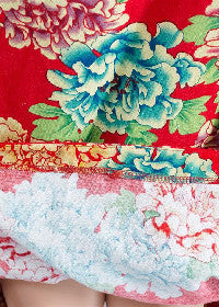 • Stampa floreale vivace: Fiori grandi e colorati su fondo rosso per un look energico