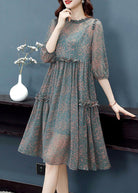 Questo abito a fiori in chiffon conquista con la sua delicata trasparenza, le maniche a 3/4 e la vestibilità fluida. Il taglio in vita con volant e il motivo floreale all-over regalano un look fresco e femminile, ideale per la primavera o l'estate.