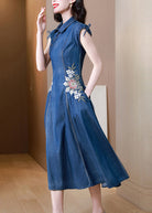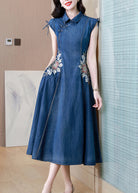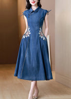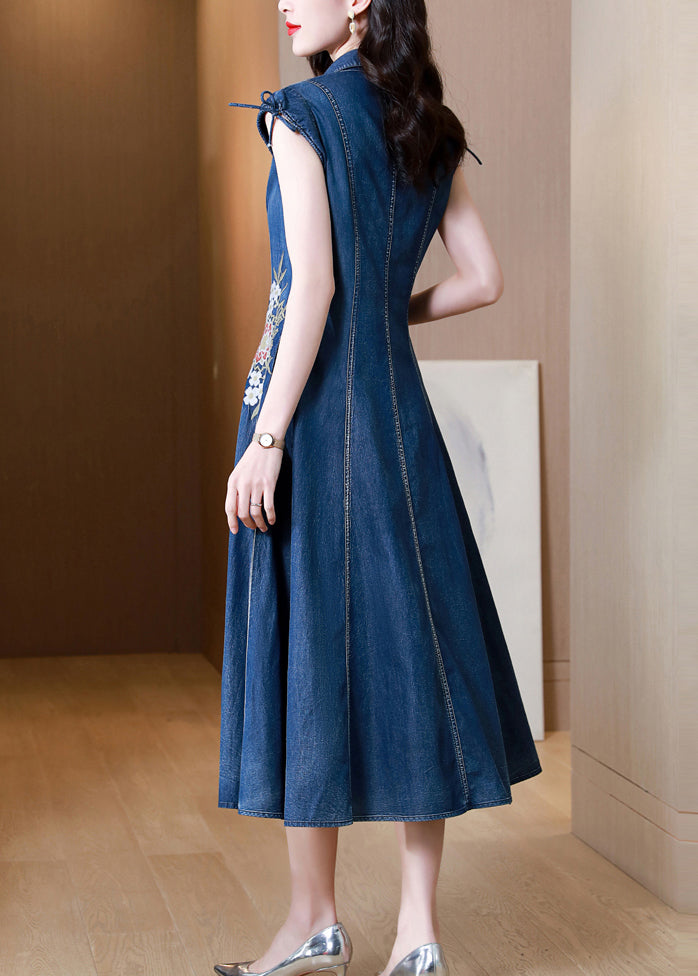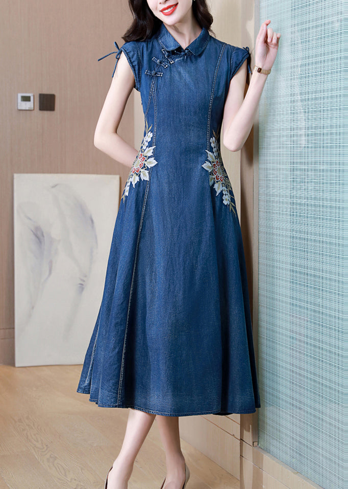 Questo abito in denim con ricami floreali combina stile orientale e comfort quotidiano in un design originale e femminile.