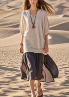 • Colore Bicolore Naturale: Parte superiore beige e gonna grigio scuro per un contrasto elegante