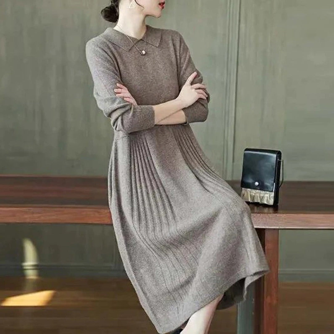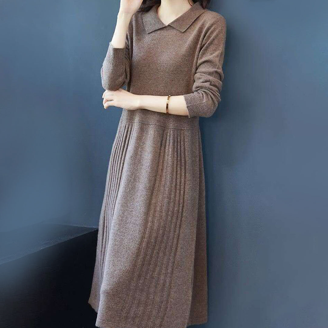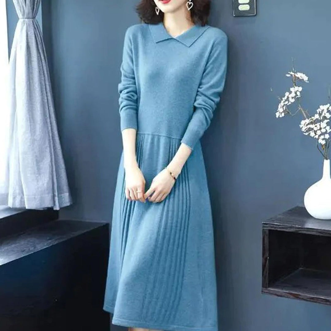 Abito in Maglia a Maniche Lunghe | Caldo & Elegante | Vestibilità Fluida & Colletto Chic