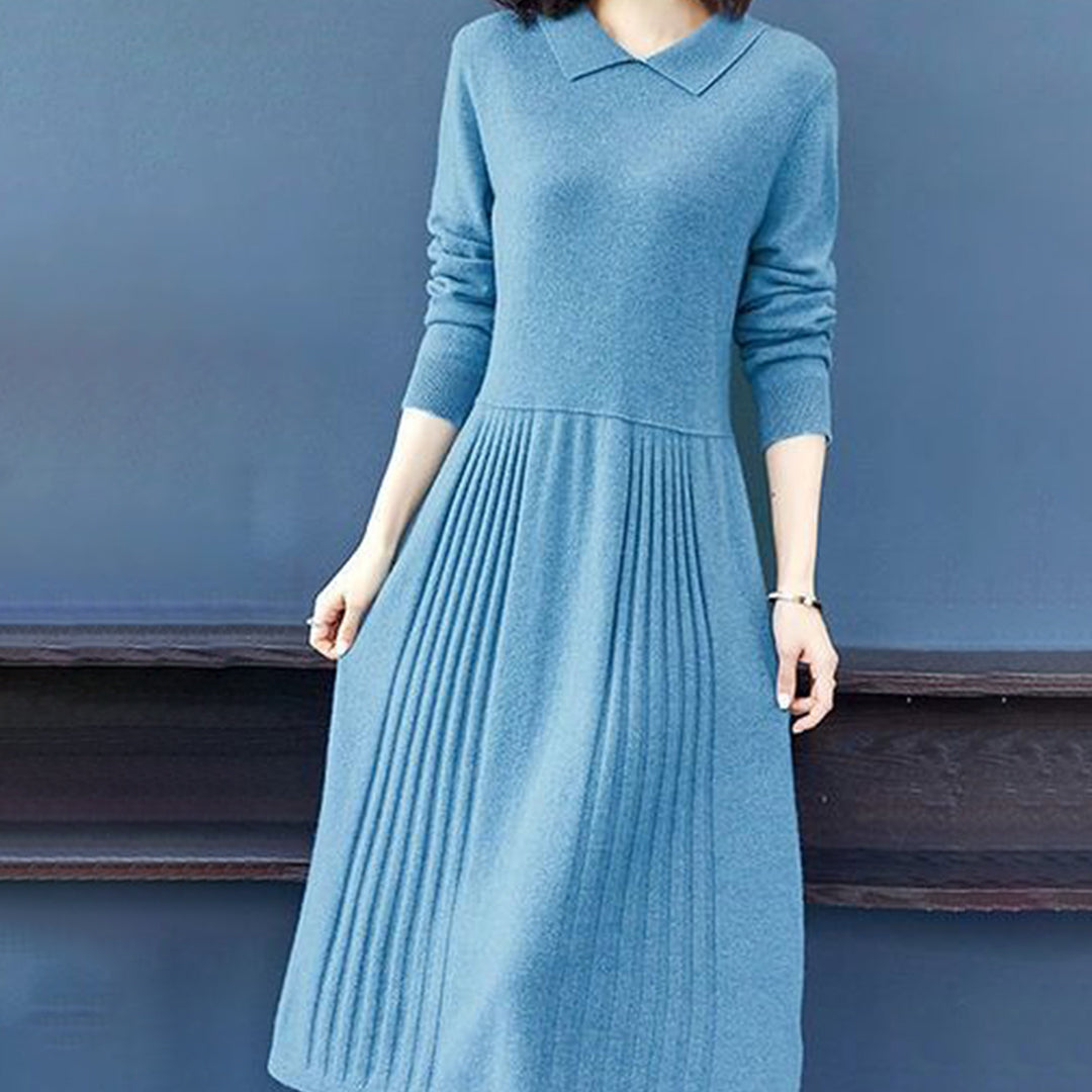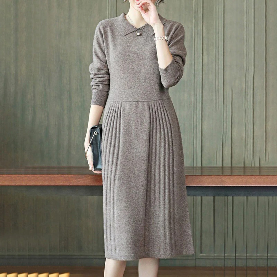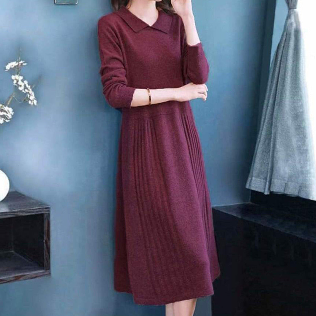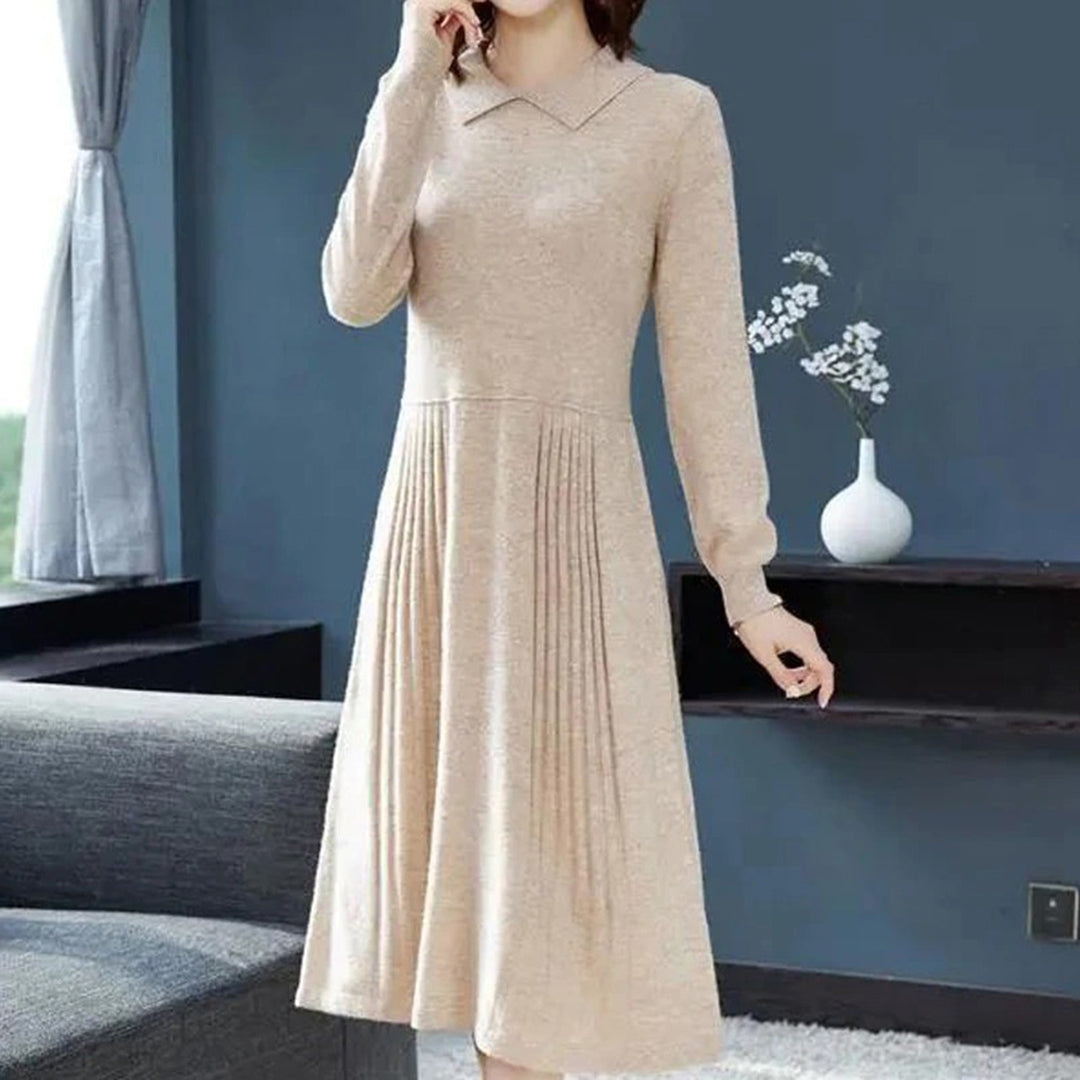 Abito in Maglia a Maniche Lunghe | Caldo & Elegante | Vestibilità Fluida & Colletto Chic