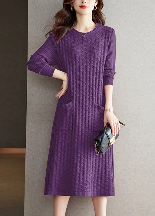 Questo vestito in maglia con lavorazione a rilievo è la scelta perfetta per un look comodo ma curato.