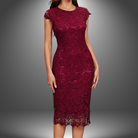 Questo abito in pizzo aderente unisce raffinatezza e femminilità con una silhouette elegante e dettagli romantici.