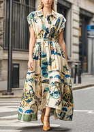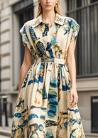 Questo abito camicia lungo con fantasia artistica dona un tocco creativo e raffinato a ogni look.