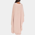 Questo abito lungo a mantella con taglio ampio è perfetto per chi desidera un look raffinato e senza tempo.