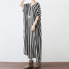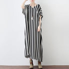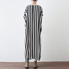 Questo abito lungo a righe verticali è la scelta perfetta per chi ama lo stile minimalista ma con un tocco grafico distintivo.
