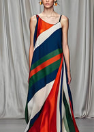 Questo abito lungo in stile resort è la scelta perfetta. Con la sua stampa a maxi righe diagonali e i colori vibranti, è pensato per chi ama farsi notare con classe. Le spalline sottili e il taglio scivolato donano un tocco sensuale e sofisticato, mentre il tessuto fluido accarezza il corpo con leggerezza.