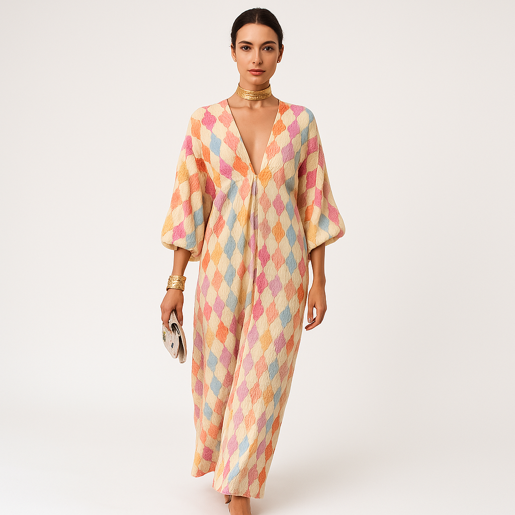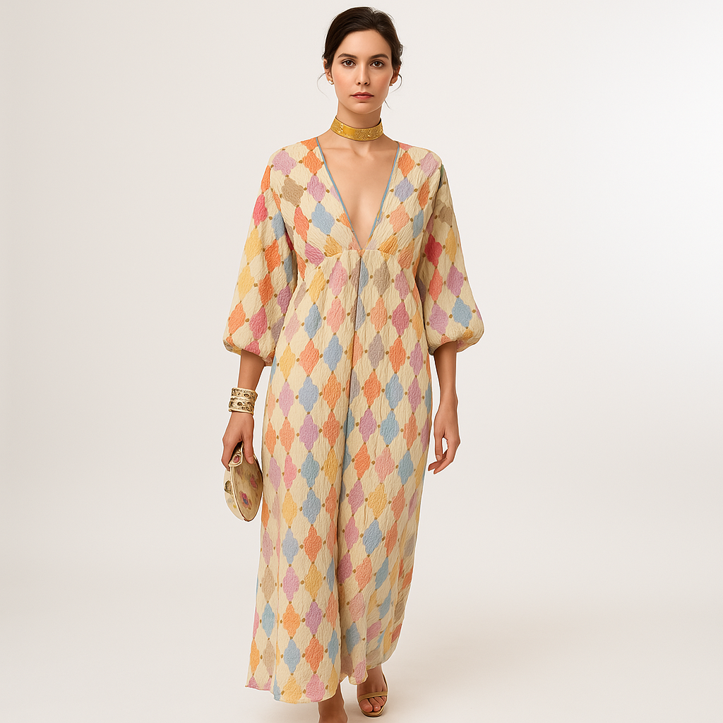 Abito Lungo a Rombo | Cotone | Leggero e Multicolore