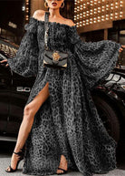 Questo abito lungo con stampa animalier e spacco laterale è perfetto per distinguerti con stile.