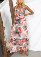 Questo maxi dress senza spalline con stampa astratta colorata è la combinazione ideale di stile e leggerezza.