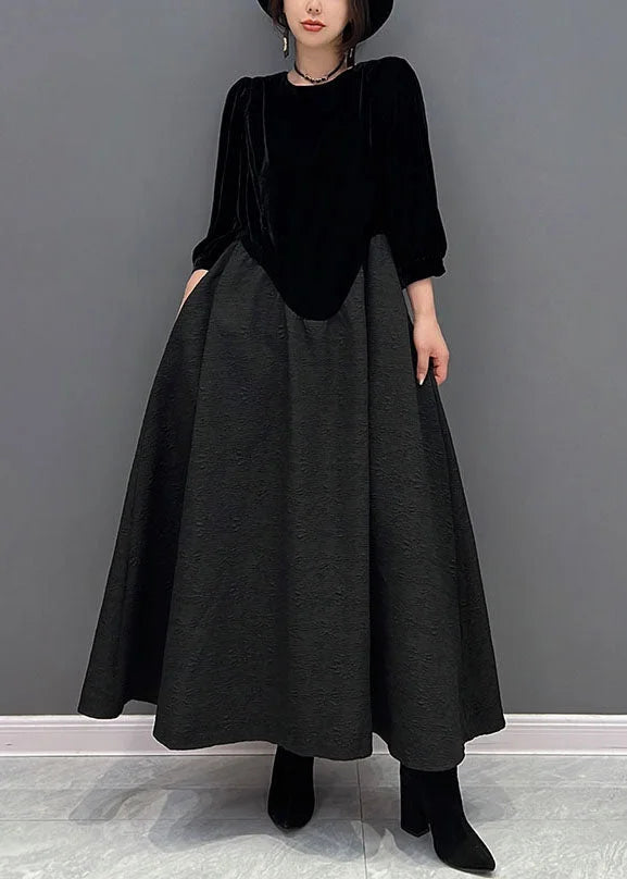 Abito lungo bicolore in velluto