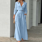 Abito Lungo con Cintura | Elegante & Versatile | Scollo a V & Maniche Lunghe