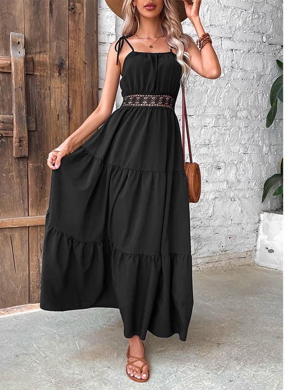 Abito Lungo con Gonna a Balze | Spalline Sottili & Vita Sottolineata | Boho Elegante Estivo