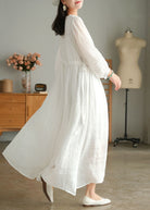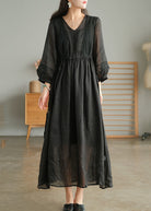 Questo abito lungo in tessuto leggero con maniche trasparenti e inserti in pizzo è l’equilibrio perfetto tra eleganza e comfort.