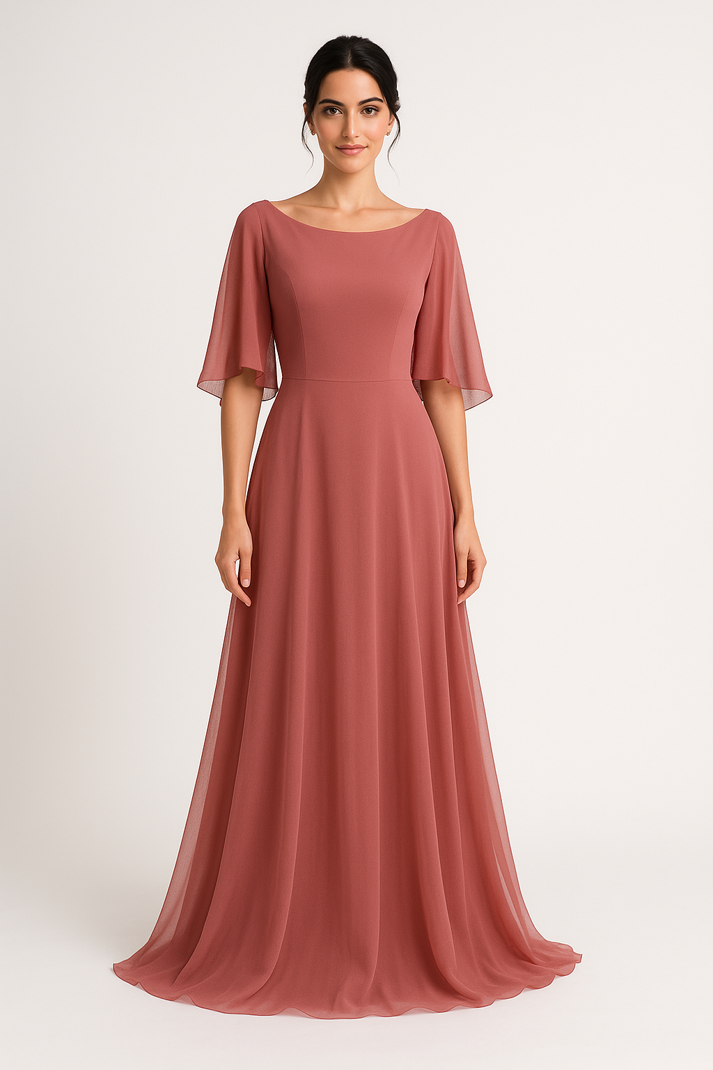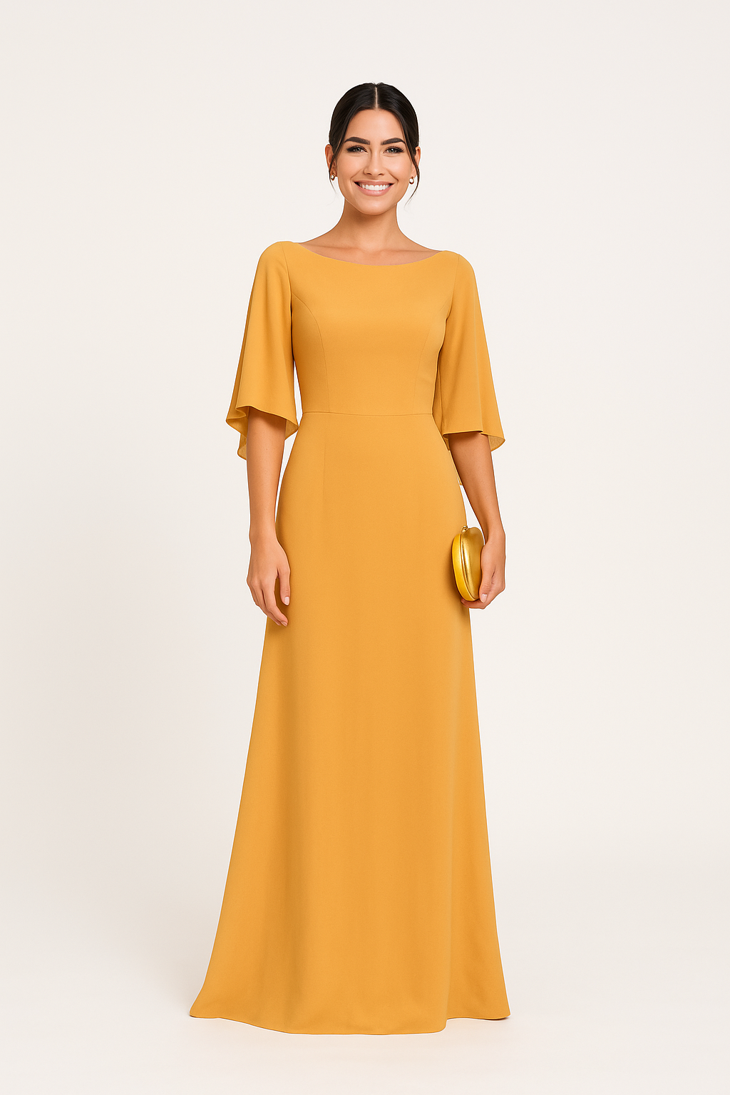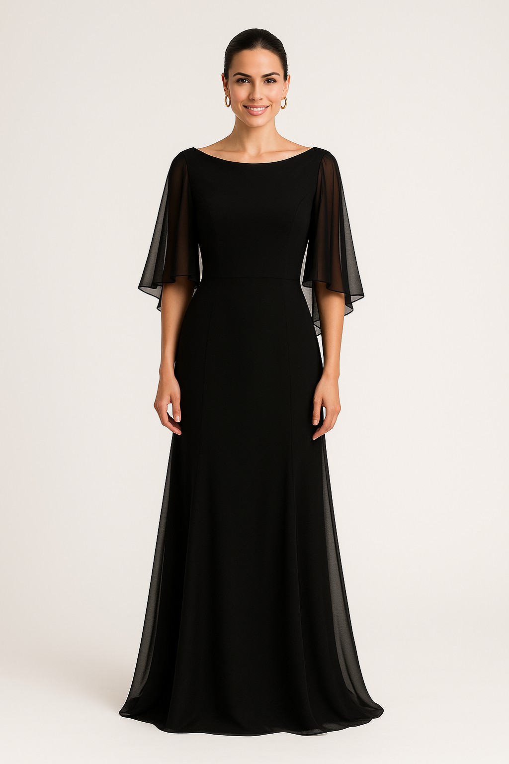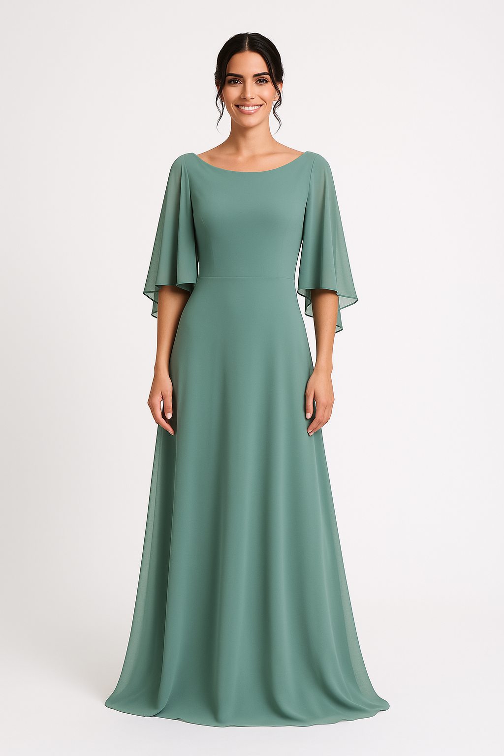 Abito Lungo da Cerimonia | Eleganza Fluida | Maniche a Farfalla