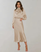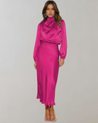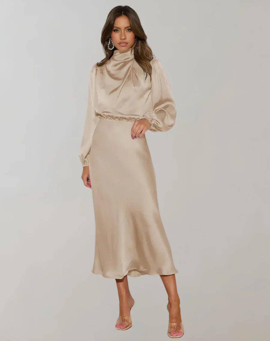 Abito Lungo Elegante | Raso | Collo Drappeggiato Sofisticato