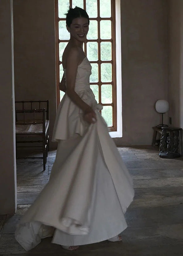 • Design: Abito lungo senza spalline con corpetto aderente