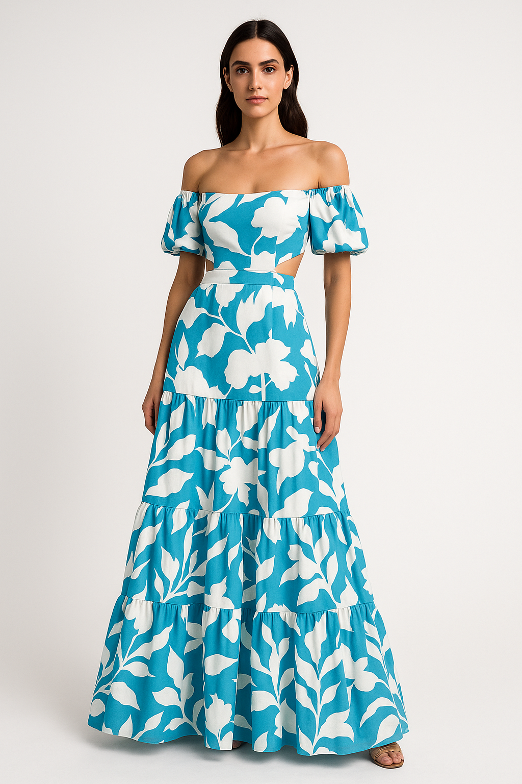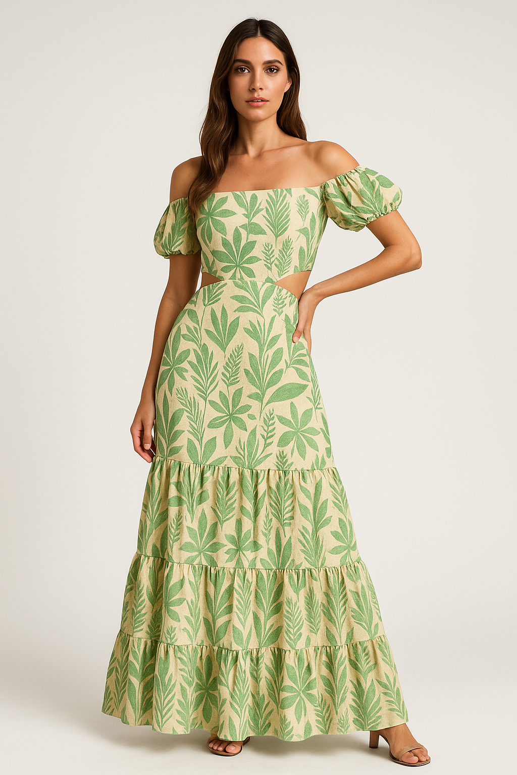 Abito Lungo Estivo | Off-Shoulder | Stampa Tropicale