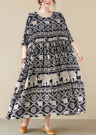 Questo abito lungo oversize con stampa elefanti unisce comfort, personalità e un tocco boho raffinato.