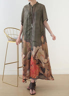 Questo vestito lungo con stampa floreale è un connubio perfetto tra arte e moda.