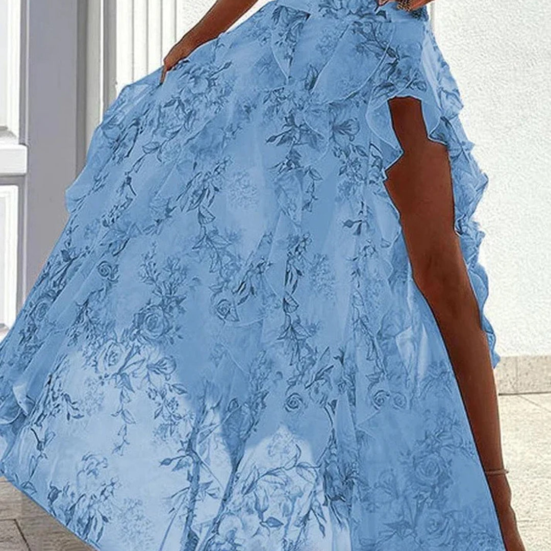 • Dettagli: Maniche corte a balze per un tocco romantico