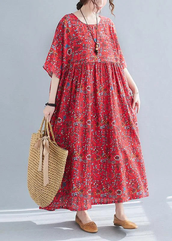 Questo vestito lungo in cotone con stampa floreale è fresco, leggero e dal taglio rilassato.